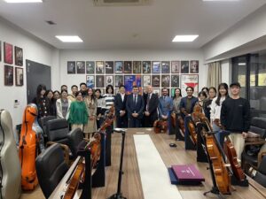 Si è svolta il giorno 27 ottobre 2025 la masterclass sull’arte della liuteria, intitolata Cremona Violins. Il Consorzio Liutai ‘Antonio Stradivari’ Cremona allo Zhejiang Conservatory of Music (ZJCM) a Hangzhou, Zhejiang. Durante l’occasione, i tre Maestri Liutai del Consorzio “Antonio Stradivari” di Cremona, Sandro Asinari, nonché vicepresidente del Consorzio, e i Maestri Andrea Grisales e Marco Piccinotti, hanno condiviso con i presenti la storia del Consorzio, della liuteria cremonese e le varie fasi di lavorazione di un violino. Agli studenti è stata data anche l’opportunità di provare personalmente gli strumenti portati direttamente dal Consorzio per apprezzarne da vicino la qualità artigianale e il suono. Inoltre, gli studenti hanno ricevuto assistenza nelle operazioni quotidiane di buona manutenzione dei loro strumenti – violini, viole, violoncelli e contrabbassi.