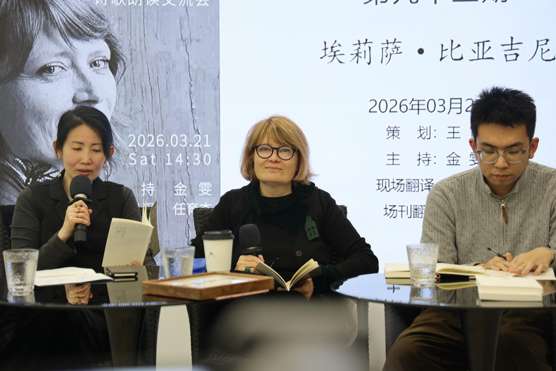 Durante l’incontro, Elisa Biagini ha letto una selezione delle sue poesie in italiano, raccolte in un opuscolo accompagnato dalla traduzione cinese a cura della professoressa e premiata traduttrice, Chen Ying. Le versioni in cinese sono state interpretate da lettori presenti in sala, contribuendo a creare uno scambio culturale unico nel suo genere.