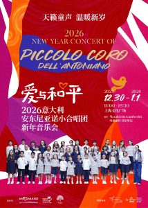 意大利驻沪总领事馆文化处欣然宣布2026安东尼亚诺小合唱团新年音乐会“爱与和平”将于2025年12月30日19:30、12月31日19:30、2026年1月1日14:00和19:30重返上海文化广场。 自2016年新年首次来华,安东尼亚诺小合唱团与中国观众一起迎接新年的传统,便一年年延续下来,从未间断。去年,安团与中国观众携手走过了第一个“十年之约”,新的一年,这份美好的约定仍在继续。 2025年,安团迎来了建团以来的第三位指挥玛格丽特·甘伯里尼,今年将是她首次来到中国,执棒新年音乐会。 安团的音乐打动了全世界数百万观众的心。今年的新年音乐也将是一场充满感动与惊喜的体验,届时孩子们将演唱第 68届金币儿歌赛(欧洲顶级儿歌赛)的全新获奖曲和历年经典曲目。 此外,安东尼亚诺小合唱团为中国观众特别准备了精心挑选的中文歌曲。而作为安团在中国的姐妹团,绣球花小合唱团也将与意大利的小歌手们同台演出,共同以清澈童声完美演绎跨越文化和语言的音乐魅力。