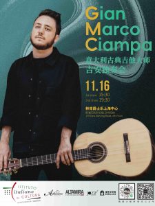 意大利驻沪总领事馆文化处欣然呈现詹马尔科·钱帕音乐会。本次音乐会将于2025年11月16日在林肯爵士乐上海中心举行,是涵盖重庆、杭州等地的中国巡演的一部分。 被誉为当代意大利最具影响力的古典吉他演奏家之一的钱帕,将在本次中国巡演中展现其非凡的艺术才华与独具辨识度的舞台魅力。 詹马尔科·钱帕 1990年出生,师从阿尔图罗·塔利尼大师与布鲁诺·巴蒂斯蒂·达马里奥大师,以最高分毕业于罗马圣切契利亚音乐学院。自幼年起便开始了密集的音乐会生涯,其演出及大师班足迹遍布全球众多国家,包括澳大利亚、日本、美国、阿根廷、墨西哥、新西兰、丹麦、德国、法国、西班牙、意大利、克罗地亚及希腊。 他曾斩获四十余项国际比赛大奖,其中包括墨尔本国际吉他比赛、东京国际吉他比赛及欧洲吉他比赛。钱帕现任意大利南部最负盛名的音乐学府之一——萨莱诺”朱塞佩·马尔图齐”音乐学院吉他教授。 林肯爵士乐上海中心 林肯爵士乐中心成立于1987年,总部位于纽约市。在其三十周年之际,与上海外滩投资集团合作推出林肯爵士乐上海中心。该中心坐落于外滩附近,通过富有创意和启发性的演出,为上海爵士乐爱好者呈现世界级的爵士乐节目。